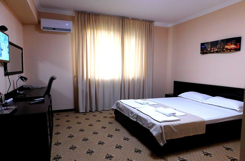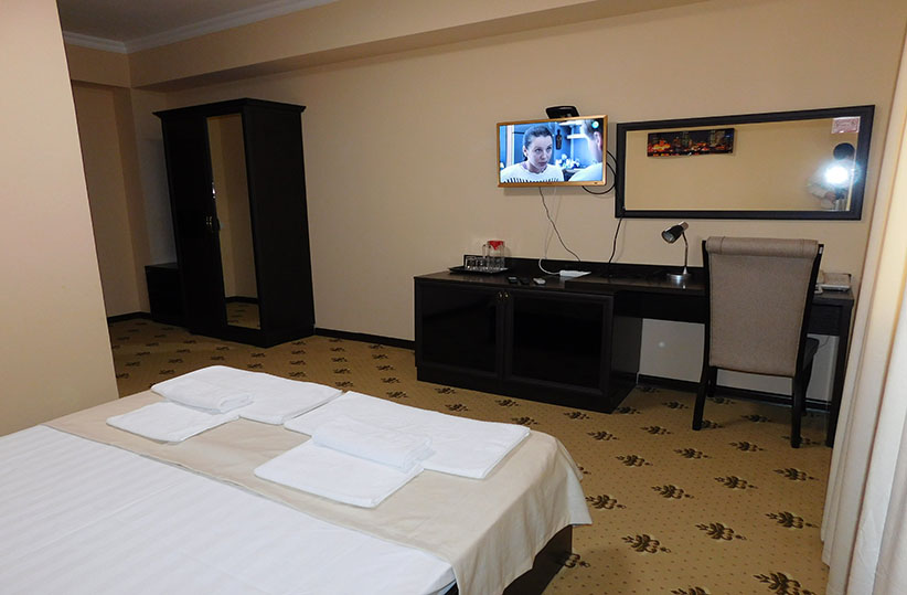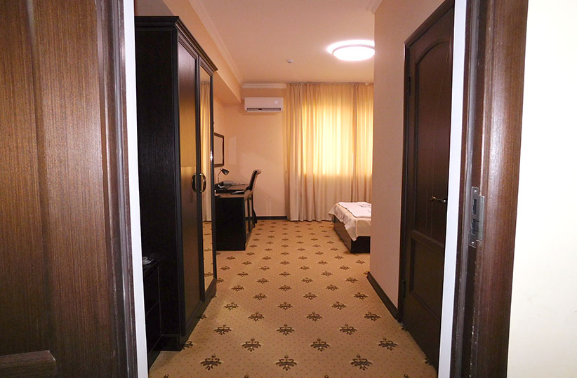 Характеристика номера: 26 кв. м. Новая удобная мебель с широкой кроватью, кондиционер, телефония, кабельное телевидение (стандартные 46 каналов с возможностью подключения полного пакета каналов), холодильник, электронный сейф с персональным кодом, санузел с душевой кабиной, феном и набором туалетных принадлежностей , wi-fi в комнате для гостей бесплатно, детская развлекательная комната, бильярд, настольный теннис, шашки, шахматы. Непосредственно перед санаторием имеется сквер для пеших прогулок.